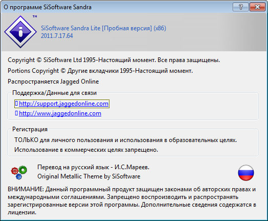Скачать программу SiSoftware Sandra Lite 2011.7 v17.64 (54,78 МБ):