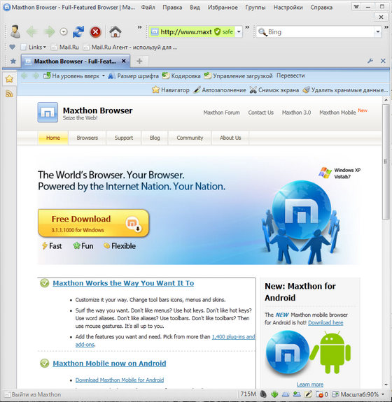 Скачать программу Maxthon 2.5.18.1000 Final (6,53 МБ):