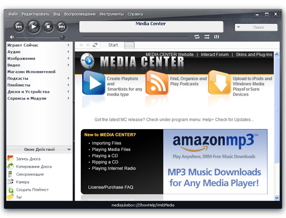 При помощи J. River Media Center Вы сможете, с помощью компьютера, управлять всеми подключенными к нему мультимедиа-устройствами. С помощью этой программы вы сможете копировать музыку на портативные цифровые плееры, перемешать цифровые фотографии с камеры в цифровую библиотеку медиа-центра, записывать из аудио-файлов музыкальные диски, записывать любимые телепрограммы и просматривать их на ТВ. Мультимедийный центр позволяет включить в разных комнатах в одно и то же время разную музыку.