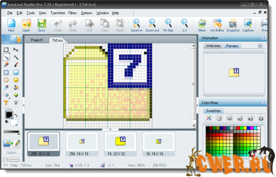 IconCool Studio Pro - программа для создания и редактирования иконок. Утилита позволяет импортировать и экспортировать иконки, содержит значительное число художественных инструментов для создания и редактирования иконок стандартных и специальных размеров. Можно создавать значки любых размеров, с глубиной цвета вплоть до 32-bit True Color, создавать полупрозрачные иконки, экспортировать картинки в Photoshop, редактировать анимационные GIF файлы.