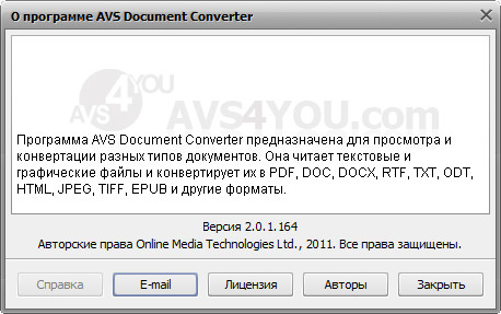 Скачать программу AVS Document Converter 2.0.1.164 (32,82 МБ):