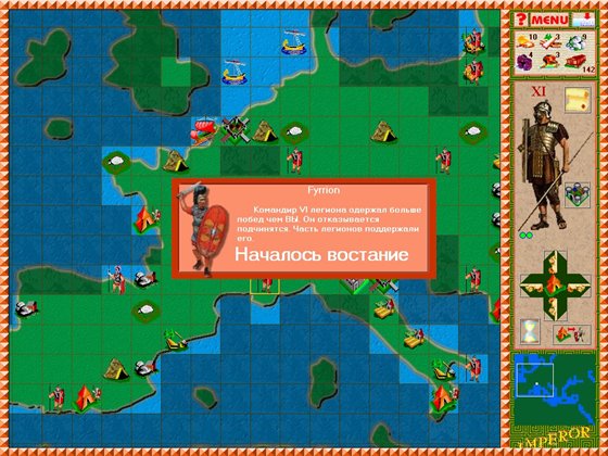Тщательно выбирать места под постройку городов и портов. Следить за победами других легионов, в случае если их станет больше чем у вас возможен бунт – каждый командир хочет стать императором. Итак, жребий брошен!