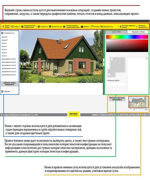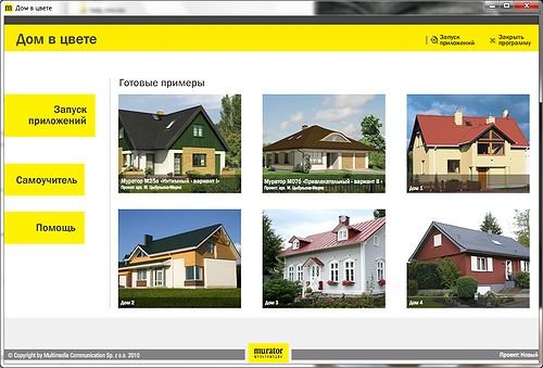 Специальное приложение к июньскому номеру журнала Murator было создано для того, чтобы быстро подбирать цвета для существующих или проектируемых фасадов и кровель. Для его запуска не требуется предварительной установки, кроме того авторы приложили максимум усилий, чтобы мультимедийный продукт работал на всех существующих компьютерах нашего рынка.