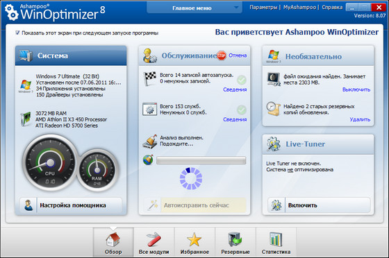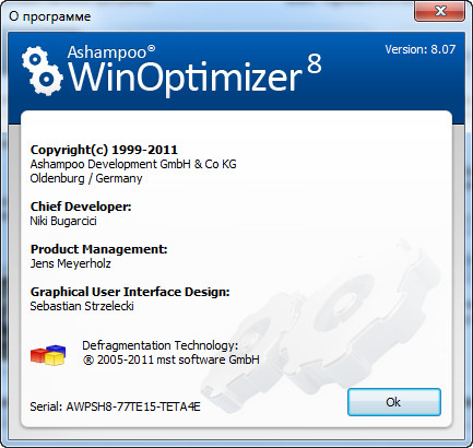 Скачать программу Ashampoo WinOptimizer 8.07 (23,76 МБ):