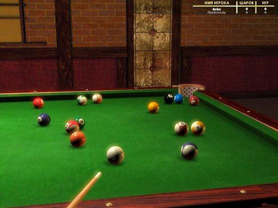 Один из самых лучших бильярдов. Отличается великолепной графикой, современной физикой и благоприятным интерфейсом. Игра содержит в себе целую серию различных бильярдов: это всем до боли знакомая "восьмерка", "девятка", "десятка", "в одну лузу", "прямой пул", "Снукер", "Русский", "Карамболь".
