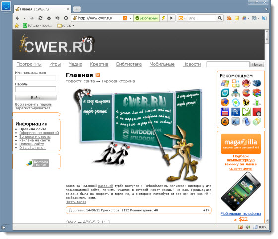 Maxthon - это новое поколение прогрессивной линейки браузеров. Два его движка гарантируют быстрое и корректное отображение страниц - даже на самых старых сайтах, сделанных без соблюдения стандартов. Убедитесь в этом лично, и заодно попробуйте в действии его самые вкусные фишки: супер-перетаскивание, управление жестами мыши, автозаполнение, умную адресную строку, блокировку рекламы и онлайн-закладки.