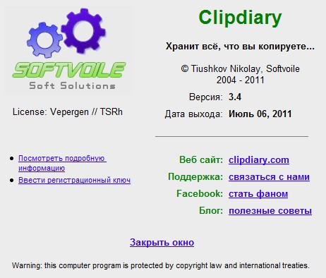 Скачать программу Сlipdiary 3.4 (4,62 МБ):