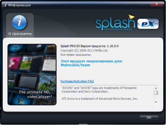 Splash PRO EX имеет встроенный кодек Mirillis AVC/H.264, который является собственной разработкой компании, и способен обеспечить высококачественное четкое и гладкое изображение в высоком разрешении. Плеер отличается стильным, удобным интерфейсом.