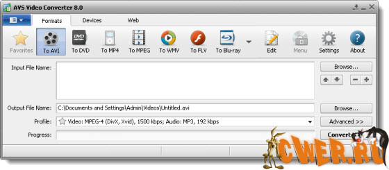 AVS Video Converter - программа с расширенными возможностями, всё в одном, конвертер, прожиг VCD, SVCD, DVD, продвинутый видеоредактор. Ключевой особенностью его является: конвертер AVI, MPEG, WMV, DVD видео в AVI, MPEG, WMV, RM форматы, прожиг DVD, SVCD или VCD, пакетное конвертирование, редактирование видео с наложением эффектов и фильтров, извлечение аудио из видео и сохранение в отдельный аудиофайл, извлечение фрейма (кадра) и сохранение как картинки, разбиение на отрезки и соединение видеофайлов, ротация видео, добавление к видео текстов, баннеров, логотипов, выбор и настройка кодека для конвертирования, имеет русский интерфейс.