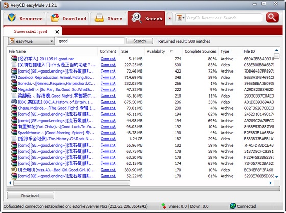 easyMule - бесплатное и доступное программное обеспечение P2P для разделения ресурсов. С easyMule вы можете использовать все всемирные компьютеры и серверы, интегрированные в огромные ресурсы сети для шеринга информацией. Пользователи могут искать ресурсы в этой огромной сети и загружать файлы многоточечной передачей для лучшей скорости.
