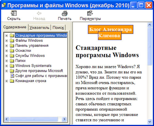 • Программа для чтения chm-файлов (файл справки, вшит в windows)