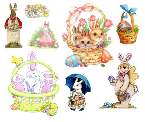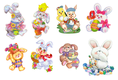 Красивый клипарт к Пасхе с яйцами и зайчиками