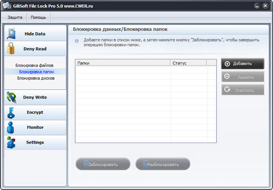 • Возможность заблокировать доступ к файлам,папкам или дискам (пользователи не смогут открывать, читать, изменять, перемещать, удалять, копировать, переименовывать защищенные данные без пароля).