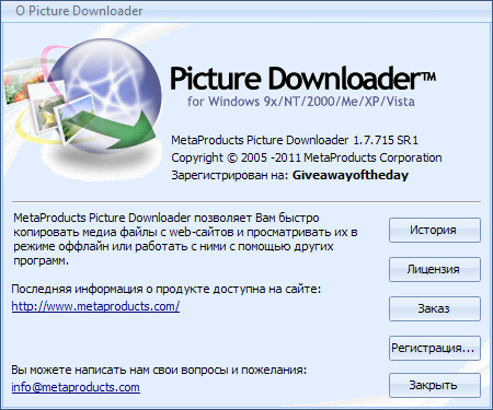 Скачать программу Picture Downloader 1.7.715 SR1 (3,42 МБ):
