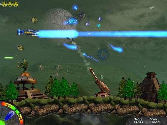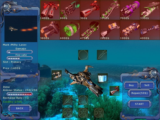 В конце каждого уровня вам предстоит сразиться с главным "боссом". С каждым уровнем врагов становится все больше и больше. Они становятся все мощнее. Но и ваш корабль вы постепенно улучшаете. Из уничтоженных врагов выпадают различные бонусы, которые помогут в бою. Пополняйте арсенал своего корабля в оружейном магазине и разгромите врага! Сражения будут проходить в космосе, в воздухе, на море и в подземных мирах. Теперь судьба планеты в ваших руках!