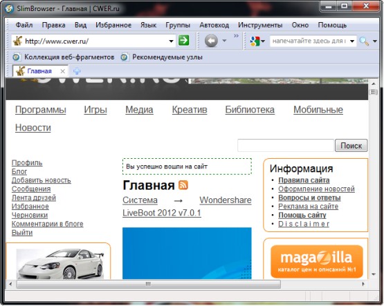 Скачать программу SlimBrowser 6.00 Build 053 Final (3 МБ):