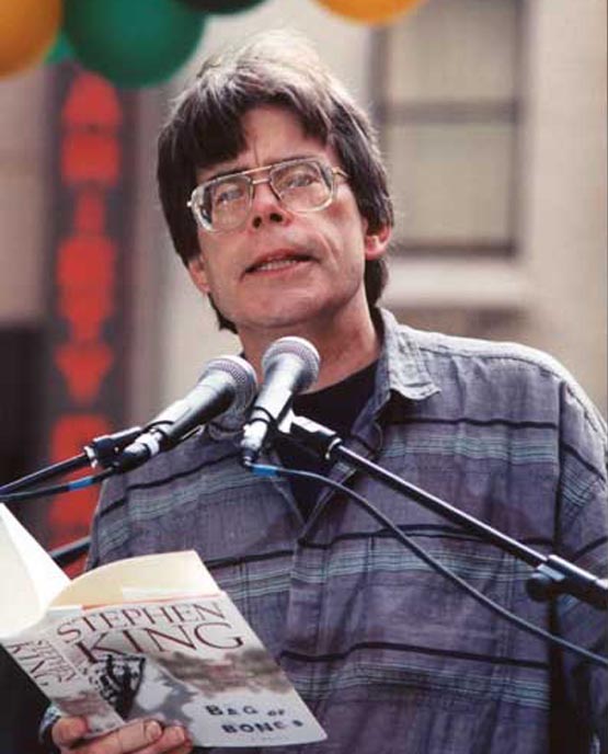 Стивен Кинг - высокий (примерно 1 метр и 93 сантиметра) голубоглазый человек в очках с черными волосами с проседью. Иногда он отращивает бороду и усы. Практически всегда одевается весьма демократично - носит джинсы и простую рубашку. Кинг обожает рок музыку и бейсбол - в свое время Стивен даже приобрел две специализированные радиостанции Бангора. Первая из них - ВЗОН, занимается спортивными трансляциями. Вторая - ВКИТ, позиционирует себя как рок-радиостанцию Бангора. Кинг сам довольно хорошо играет на гитаре и выступает в составе любительской группы "Рок Боттом Ремайндерс", состоящей из писателей и литературных критиков. Быть может, они не очень хорошо владеют инструментами, но зато поют и играют от души.