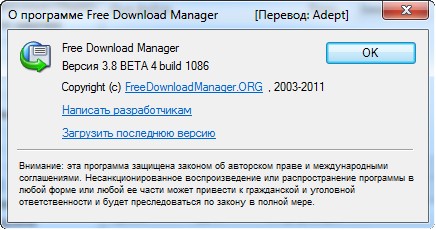 Скачать программу Free Download Manager 3.8 Beta 4 Build 1086 (6,4 МБ):