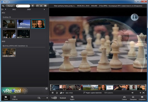 Программный продукт vReveal разработан специально для того, чтобы снять напряжение с глаз любителей видео, которое не всегда можно просматривать в самом качественном виде. С помощью vReveal можно добиться хорошего качества даже от "безнадежных" видеороликов, скачанных из сети с помехами, или DVD дисков с пиратской записью. Программа не требует большого опыта и пользовательских навыков. Обработка видео плохого качества в vReveal происходит в автоматическом режиме по предварительным пользовательским настройкам, вводить которые советует, кстати, сама программа.