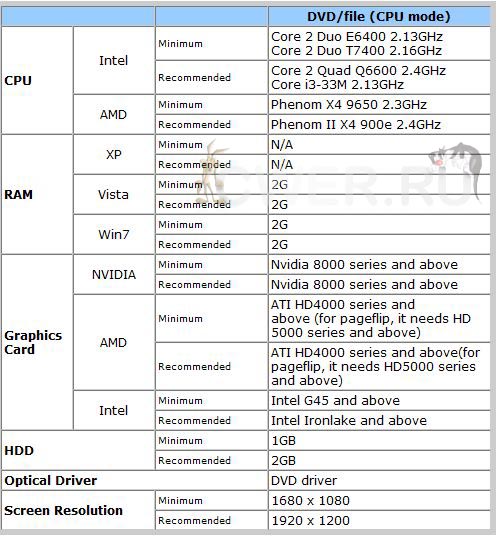 • Улучшенное декодирование видео: MPEG-1/2/4, VC1 (SMPTE 421M), H.264 HD;