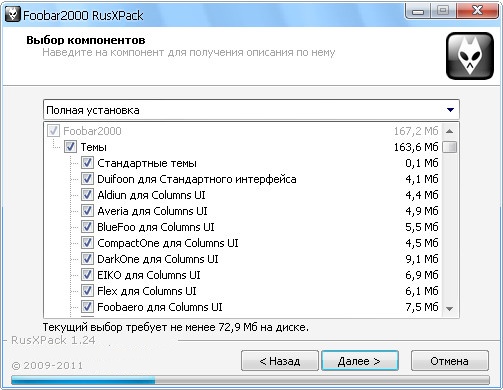Скачать программу Foobar2000 1.1.8 RusXPack 1.24 beta 4 (17,1 МБ):