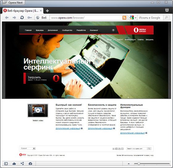 Скачать программу Opera Next 12.00 Build 1054 Snapshot (9,82 МБ):