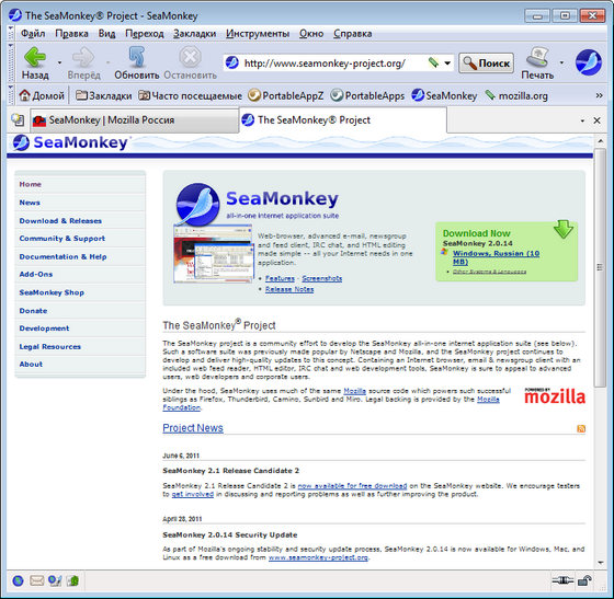 Скачать программу Portable Mozilla SeaMonkey 2.3.3 (18,11 МБ):