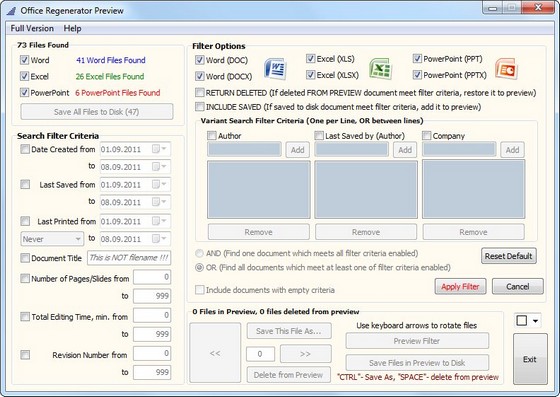 Office Regenerator - новейшее решение для восстановления утерянных документов Microsoft Office. Это идеальное решение, которое поможет вам восстановить удаленные или поврежденные Word, Excel или PowerPoint файлы с существующих разделов, а также утерянные документы с отформатированных, поврежденных или удаленных разделов.
