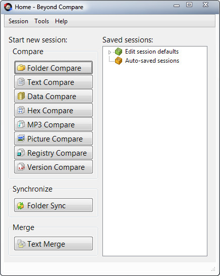 Beyond Compare - программа для сравнения файлов и папок. С ее помощью можно синхронизировать архивы, сайты FTP, обновлять веб-сайты, управлять исходным кодом, находить отличия между двумя текстовыми файлами и многое другое. Beyond Compare может сохранять образцы структуры выбранных папок и в заданное время сравнивать их с теми копиями, которые находятся на диске. Программа поддерживает большое количество операций с файлами и папками, в том числе скрипты для автоматизации заданий. Кроме этого в состав Beyond Compare входят просмотрщики для большого количества типов файлов.