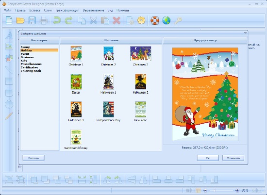 RonyaSoft Poster Designer - легкая в использовании программа для дизайна и печати привлекательных индивидуальных постеров и баннеров. Коллекция готовых шаблонов плакатов и интуитивный пользовательский интерфейс позволяют делать собственные постеры и баннеры практически за несколько кликов.