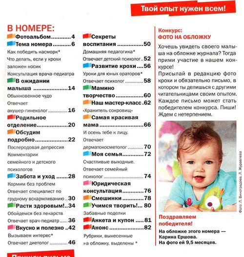 Советы по беременности, родам, питанию, развитию, уходу и воспитанию детей экспертов и читателей журнала не только помогут вам воспитать счастливого и здорового ребенка, но и - сохранить красоту и интересно и с пользой провести время во время беременности.