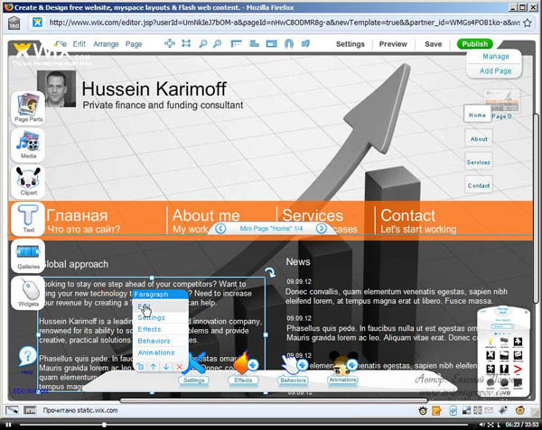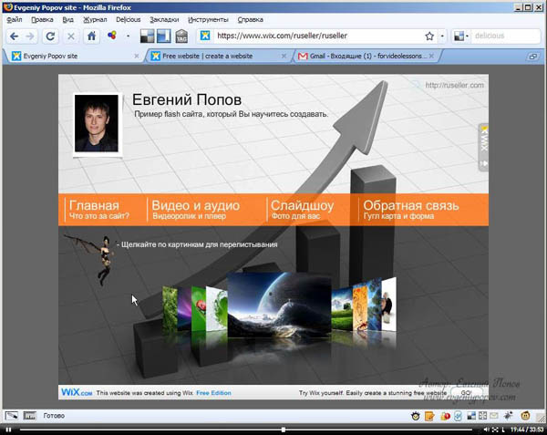 Вашему вниманию предлагается, видео-урок по созданию флеш сайта за 20 мин. В этом конструкторе много интересных возможностей по вставке различных мультимедиа-фрагментов (видео, аудио, анимация), а также большой выбор готовых шаблонов, на основе которых Вы можете создавать свои flash-сайты достаточно быстро.