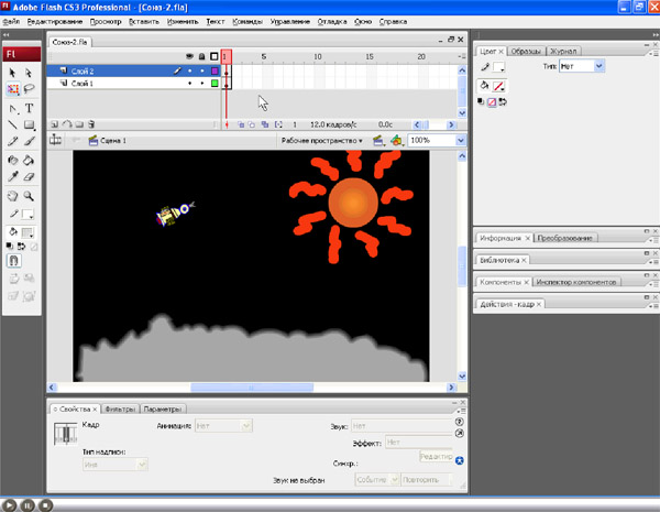 • Редактирование нескольких кадров анимации. Перемещение анимации