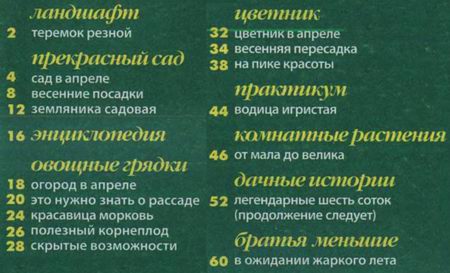 Популярный иллюстрированный журнал о загородной жизни круглый год, почти целиком составленный из писем читателей – садоводов и огородников, в которых они делятся своим опытом. Информация на любой вкус: советы и рекомендации о том, как обустроить дачный участок, как построить дом; инструкции для тех, кто стремится сделать дачный ландшафт красивым и уютным; полезные советы о нахождении на садовом участке и за его пределами; информация о том, как выращивать овощи и фрукты на дачном участке и что делать с урожаем.