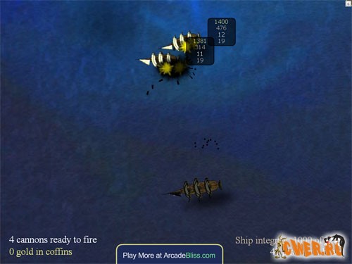 Ещё одна хорошая флешка! Уворачиваясь от вражеских ядер, потопите все корабли противника. Имеется возможность сохранения игры.