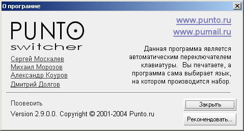 У меня прямой контакт с ADMIN_CRACK и KloneBADGuY. Некоторые версии Punto Switcher с отключенной передачей данных эксклюзивно появлялись именно в моих сборках.