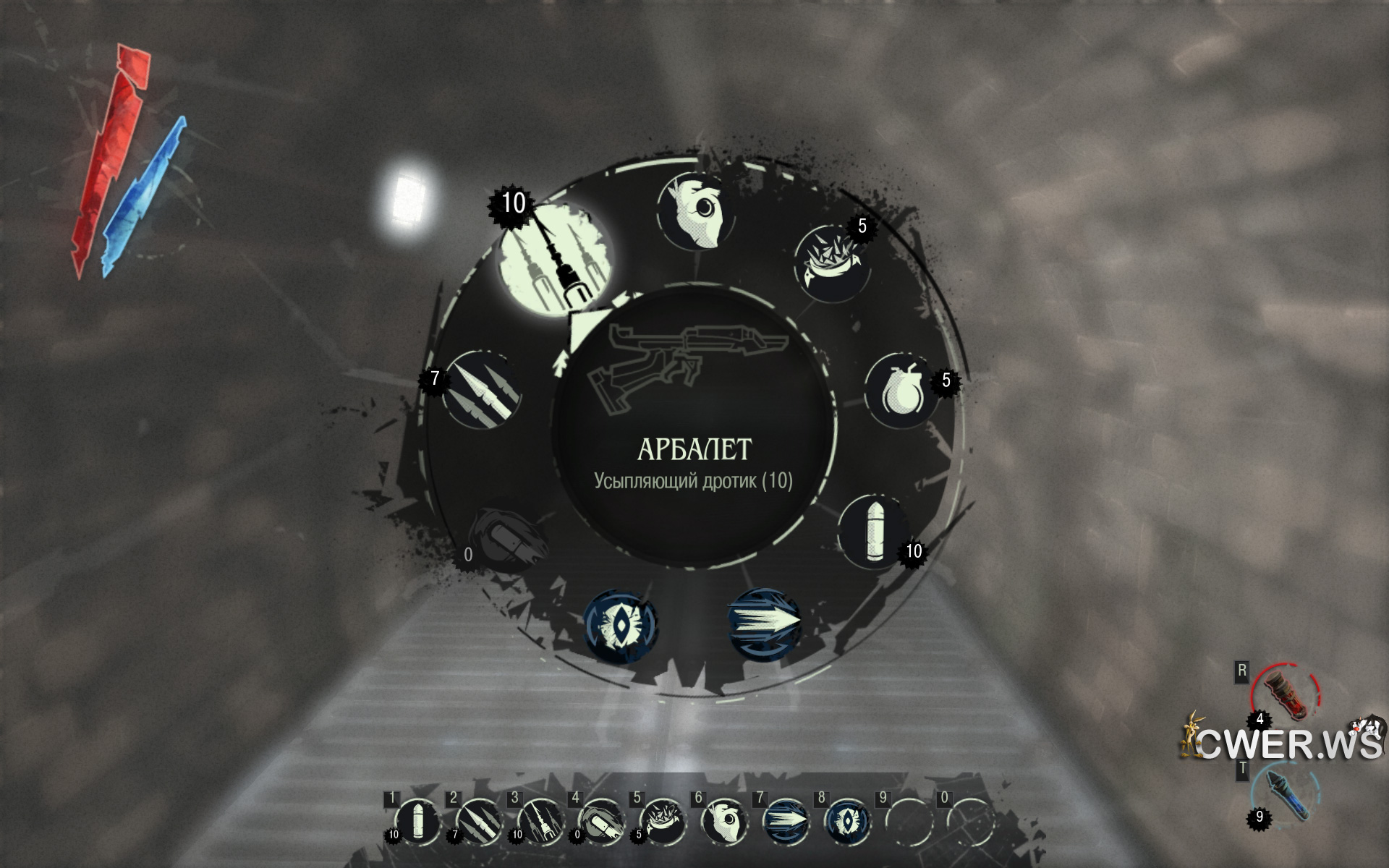 Мы играем за ассассина, но не простого, а с неким мистическим даром – он, а-ля герой Bioshock, может пользоваться не только пистолетом и кинжалом, но и различными магическими способностями, одной рукой орудуя кинжалом, а другой проделывая всякие сверхъестественные штучки. И вот тут в стройной и цельной до сих пор картине внезапно появляются прорехи. В Dishonored игроку предлагается, по сути, два варианта прохождения на выбор – либо в action-стиле, с пушкой наперевес, оставляя за собой горы трупов, либо в stealth – с минимальным возмущением спокойствия, действуя из тени, бесшумно обезоруживая стражу и просачиваясь мимо охранных систем незамеченным. С экшн-вариантом все понятно – есть пистолет, арбалет, гранаты, плюс магические способности вроде управления армией крыс, и в итоге получается такой фентезийный коридорный шутер с магией в оригинальном сеттинге. Если кому-то по душе именно такой вариант, следующий абзац можно смело пропускать.