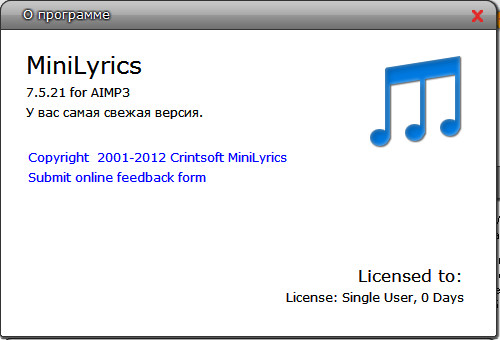Minilyrics - небольшая надстройка над наиболее популярными медиа проигрывателями, в том числе для Winamp, Aimp, Windows Media Player, iTunes, foobar2000 и многих других известных медиа-плееров, позволяющая видеть текст любых песен которые на данный момент проигрываются.