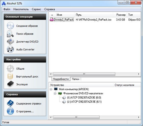 Alcohol 52% – популярнейшее приложение для эмуляции CD/DVD-приводов, скачав которое на cwer.ws, вы сможете создавать точные копии дисков и загружать их в виртуальные накопители. Бесплатная версия программы позволяет создать 6 виртуальных накопителей, каждый из которых может работать с образами дисков на скорости 200x. Alcohol 52% совместим с огромным количеством разнообразных форматов образов дисков: MDS, CCD, BIN, CUE, ISO, NRG, CDI, BWT и т.д, также возможна регистрация пользовательских расширений файлов-образов. Программа пригодится всем, кому часто приходится использовать различные CD/DVD диски. С её помощью можно сохранить все часто используемые носители в виде образов на жёстком диске вашего компьютера.