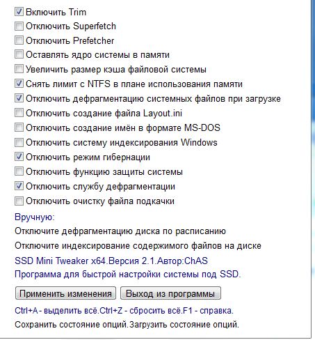 ищем в инете вот статью Как оптимизировать работу жёсткого диска и SSD