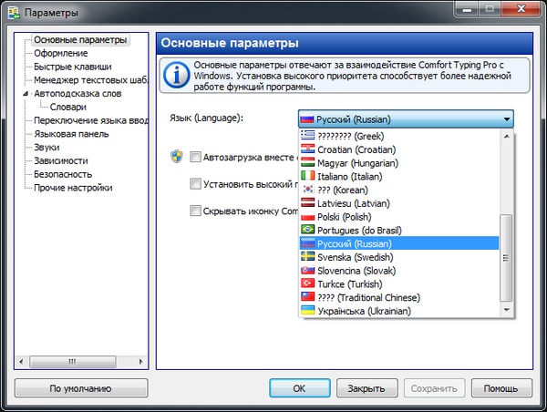 Вы можете включить функцию автоподсказки слов. Когда вы начинаете печатать слово, то Comfort Typing покажет список слов, которые начинаются с напечатанных символов. Вам остается только выбрать нужное слово из списка.