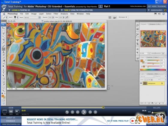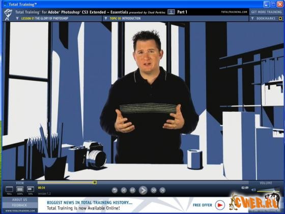 Видеокурс по программе Adobe Photoshop CS3 Extended на английском языке от лидера мирового рынка компании Total Training. Точные копии оригинальных дисков (2 DVD), собственная оболочка для запуска уроков, удобная навигация