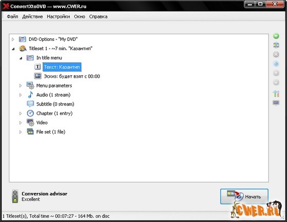 Вышла новая версия видеоконвертера ConvertXtoDVD. Программа предназначена для преобразования видео в формат, совместимый с DVD Video, и последующей записи содержимого на DVD. Программа поддерживает видеофайлы Mpeg, Mpeg, Mpeg4, MP4, VOB, WMV, DV, AVI, а также потоковое видео. Для работы программы не нужны внешние AVI-кодеки, поскольку она использует собственные. ConvertXtoDVD может автоматически создавать фрагменты (chapters), поддерживает наличие нескольких аудиодорожек, работает с субтитрами (.SRT .SUB/IDX .SSA). Также программа поддерживает создание несложного меню для DVD, в котором можно установить фон, выбрать цвет и другие параметры шрифта для надписей. Программа имеет русский интерфейс.