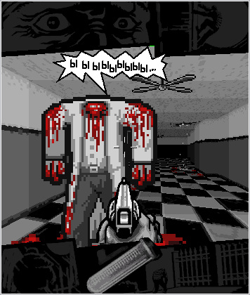3D Резня - убойный 3D шутер с элементами черного юмора. Игра создана в стиле известного фильма "Город грехов" (в том же сочетание белого, черного и красного цветов).