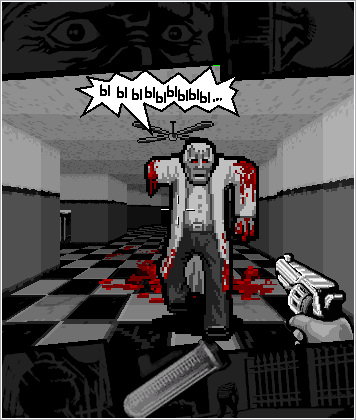 Подъехав к ней, ты сразу почувствовал неладное. Раньше на входе всегда стоял сторож дедушка Ваня, но в этот раз ворота были закрыты, и вокруг стояла гробовая тишина. Выйдя из машины и перемахнув через забор, ты оказываешься у запертого входа. С трудом поднявшись по скользкой от дождя водосточной трубе на третий этаж, в свете молнии твоему взору предстает ужасная картина. Да, тебе не раз приходилось видеть страшные вещи в Афгане и Чечне, но тут на гражданке... Посреди комнаты, слегка покачиваясь, в петле висел труп доктора Павлова, но что-то обглодало его ноги и содрало кожу с лица... и это "Что-то" оставило за собой кровавый след, уходящий в покрытый мраком коридор клиники.