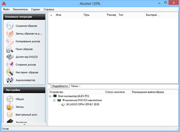 Alcohol 120% - эмулятор CD/DVD-дисков. Программа создает на жестком диске ПК пользователя образ диска с данными, аудио или видео информацией, а затем предоставляет доступ к этим данным другим программам так, словно искомый диск находится в приводе. Alcohol 120% поддерживает работу со многими форматами CD/DVD, имеет возможность работы с 31 образом одновременно, обеспечивает несоизмеримо большую (по сравнению с CD) скорость передачи данных между приложением и образом диска. Alcohol 120% может работать с большинством известных файлов-образов, эмулирует работу 200х скоростного CD-ROM, есть поиск образов, еще одна положительная черта - программа может копировать защищенные диски, обходить защиту SafeDisc, StarForce (частично), Securom и LaserLock.