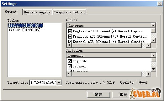 Arc DVD Copy is able to: Copy a DVD Movie In 20-40 Minutes! Shrink a dual-layer (D9) movie onto one D5 with all the Special Features,Menus, Subtitles & Languages. 1:1 D9 to D9 and D5 to D5 copy without distortion. Copy main movie only,remove unwanted Subtitles/Audios to increase quality. Split DVD-9 into two blanks with all the Special Features,Menus, Subtitles & Languages. Copy DVD to hard drive and burn DVD disc from hard drive. Copy episode DVDs(TV shows on DVD). Remove region protection(Region-free) and Macrovision Protection. Copy CSS(Content Scrambling System) protected DVD movies. Copy SONY ARccOS protected DVD movies.