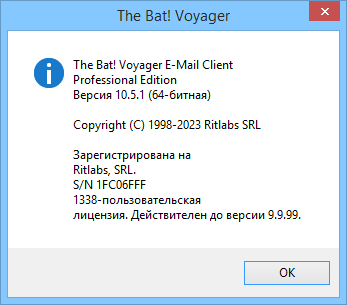 По версии 9.1.18... На hitfile.net загрузки перепутаны местами. Вместо The Bat! Professional скачивается The Bat! Voyager 9.1.18.1 и наоборот. Остальное не проверял...
