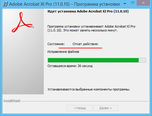Откат при установке, требуется помощь!