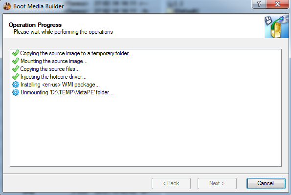• Создание копии ранее созданной загрузочной среды WinPE на CD/DVD/BD или флеш накопителе с возможностью добавления дополнительных драйверов